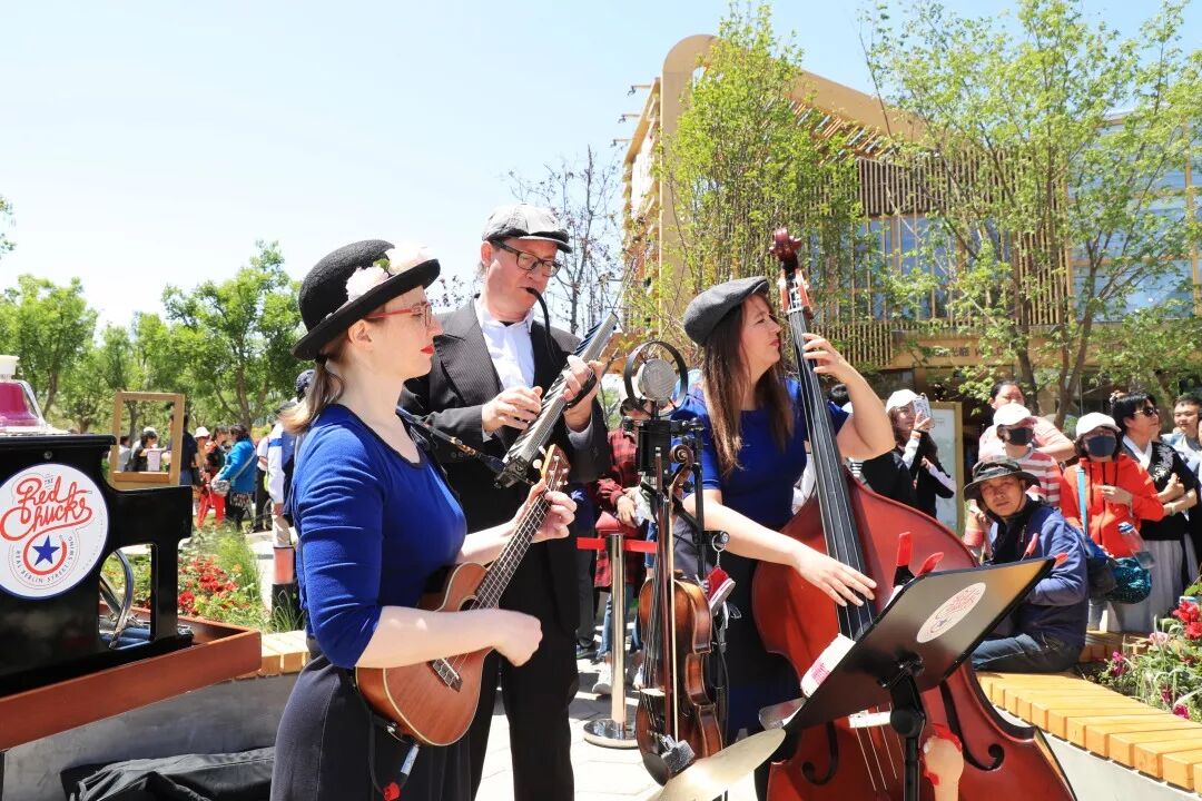 作为北京世园会首个国家日,德国日活动拉开了北京世园会的异国风情帷幕,活动现场,"Red Chucks"柏林街头摇摆爵士乐队,德国本土“Queenz of Piano”乐队以精彩的钢琴表演,还有德国驻北京使馆学校的童声合唱等特色节目,精彩的表演轰动全场。