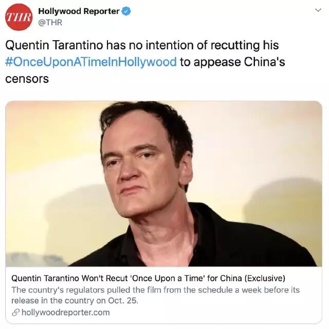 昆汀拒绝重剪《好莱坞往事》以使其能在中国上映