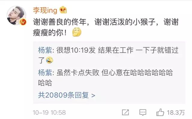 2019年亲爱的热爱的大结局播出当晚,李现微博下杨紫的评论