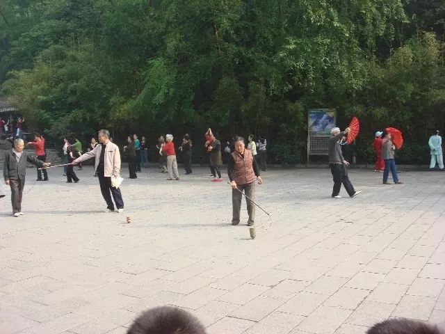 2、在贵阳的各个广场和空地上,如果你听到连续的、巨大的响声,请不要惊慌,那是贵阳大爷们的独特健身方式——抽陀螺!