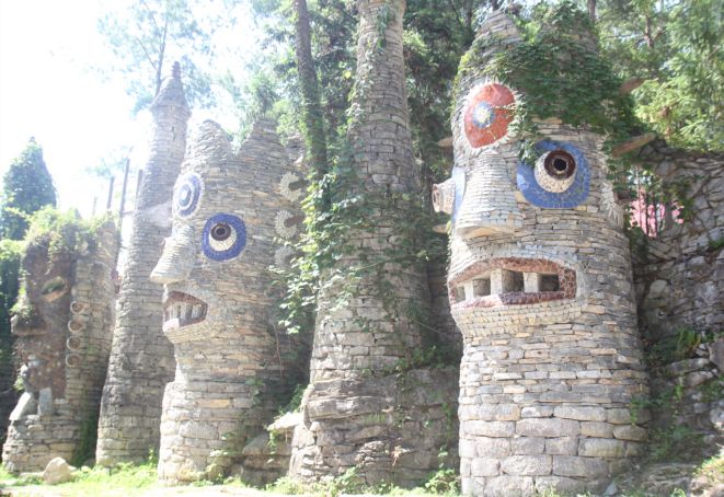 雕像由就地取材的石头、陶罐和废弃建筑材料组成