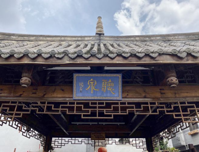【参观】从悦子庭出来,通往龙山村的路两边草木丛生,参天大树数不胜数,红色木栏上印有吴中蕃的诗文,石板墙被刻上了时间的烙印,走着走着,恍如进入了世外桃源。在快进村的地方,会有分叉路,一条通向花溪水库和松柏山水库,有农家乐可供烧烤和垂钓,一条通向村民聚居的村落,有吴中蕃故居可参观游览。走进村中,众多砖房中一处木质结构的老屋非常惹眼,这便是吴中蕃故居。如今它已成为吴氏家风馆,房屋外观还保留着此前的模样,屋中木桌木椅、木门木窗,处处都有古色古香的味道。