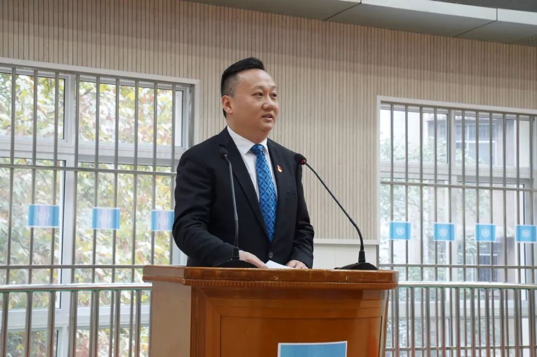 “模拟联合国,是对联合国大会和其它多边机构的仿真学术模拟,是为青年人组织的公民教育活动。”活动现场,周建新寄语在场学生,希望同学们能够充分利用这次大会的展示机会,发出自己的声音,成长为自己想要的样子,成长为一个拥有中国灵魂的世界青年。