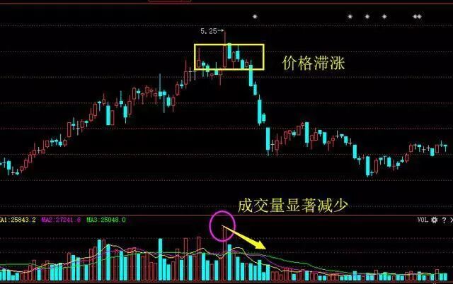 2、在形成顶部之时,如果成交量只是象征性地放大,换手率还低,而股价又开始下跌。