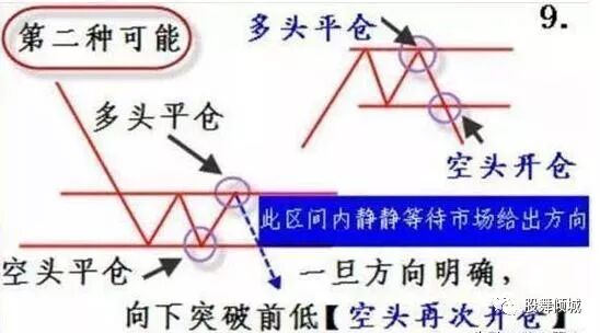 9、第二种可能:一旦方向明确,向下突破前低【空头再次开仓】,此时静观其变,选择方向。