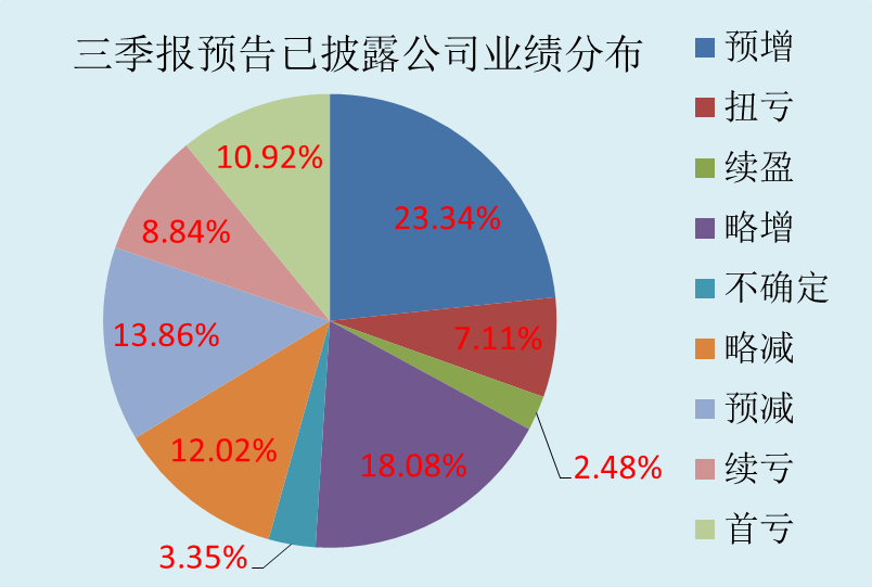 在1731份已披露三季报业绩预告中,扣除58家业绩不确定公司之后,预喜(包含预增、扭亏、续盈、略增)公司总共有883家,占比达52.78%。