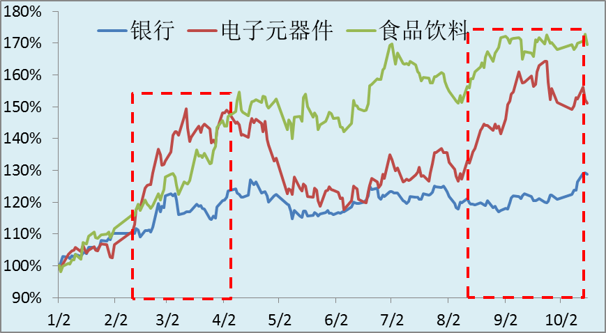 1-4月份,所有板块年报和一季报披露期;7-10月份,中报和三季报业绩披露期;剩下的5-6月份、11-12月份是业绩的真空期;