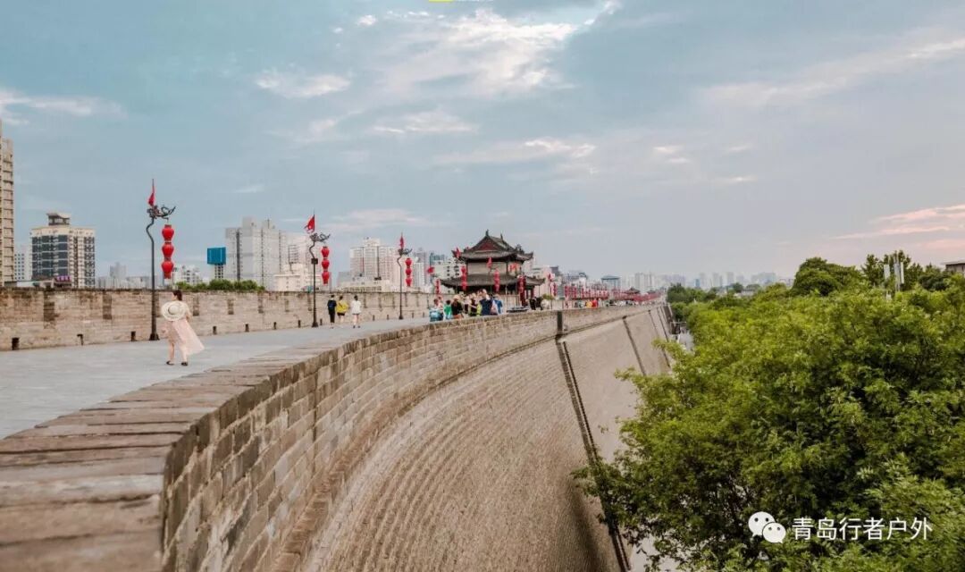 西安城墙景区位于西安市中心区,现存城墙建于明洪武七年到十一年(1374-1378),至今已有600多年历史,是中世纪后期中国历史上最著名的城垣建筑之一,是中国现存最完整的一座古代城垣建筑。呈长方形,墙高12米,底宽18米,顶宽15米,总周长13.74公里。有城门四座:东长乐门,西安定门,南永宁门,北安远门。呈长方形,墙高12米,底宽18米,顶宽15米,总周长13.74公里。西安城墙是在唐皇城的基础上建成的。完全围绕“防御”战略体系,城墙的厚度大于高度,稳固如山,墙顶可以跑车和操练。早在明王朝建立前,当朱元璋攻克徽州后,一个名叫朱升的隐士便告诉他应该“高筑墙,广积粮,缓称王”。朱元璋采纳了这些建议。当全国统一后,他便命令各府县普遍筑城。朱元璋以为“天下山川,唯秦中号为险固”。西安古城垣就是在这个建城的热潮中,由都督濮英主持,在唐皇城旧城基础上扩建起来的。明代扩建后的西安城墙高12米,顶宽12-14米,底宽15-18米。城墙每隔120米修敌台一座,突出在城墙之外,顶与城墙面平。这是专为射杀爬城的敌人设置的。敌台之间距离的一半,恰好在弓箭的有效射程之内,便于从侧面射杀攻城的敌人。城墙上共有敌台98座,上面都建有驻兵的敌楼。