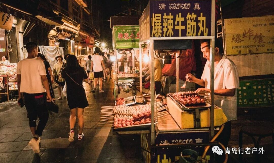 西安回民街也被称为古玩街,是回民街区多条街道的统称,由北院门、北广济街、西羊市、大皮院等数条街道组成。当地人习惯称那里为回坊。它以浓郁的穆斯林文化和氛围,为古城构筑了一道特异的风景线。回坊的主要街道以青石铺路,绿树成荫,路两旁一色仿明清建筑,餐饮器物均由回民经营,具有浓郁清真特色。这一区域有唐代含光门、明代西城门楼群、众多保存完好的清真寺和道教城隍庙、佛教西五台等众多文化遗迹。街区内众多街道具有浓郁的伊斯兰风格,清真饮食城、民族购物中心和清真寺、回民生活区“相映成趣”。回民街作为饮食集中的街区而出名,这里现在虽然被当作了针对外地游客的旅游点,但其实当地居民一直把这里当做吃小吃、逛街休闲的主要场所,尤其是夏天的夜市上在此吃饭纳凉消磨时间的市民的更多。其实整个“回坊”地区都是饭馆林立,各种各样的清真食肆与摊点密密麻麻连成一片,其中不乏当地人最认可的老字号小店。晚上的回民街有着与白天不同的精彩,整条街被浓厚的市井气息笼罩,道路两旁遍布挂着电灯、汽灯的各种摊铺,主要贩卖糕饼、干果、蜜饯、小吃。这些小摊后面则是许多经营当地风味小吃的饭馆,人多时不光店里人满为患,连店门口也会摆满桌椅。烤肉串、涮牛肚的烟火在不甚明亮的灯光下弥漫整条街,熙熙攘攘的人群都是边逛、边吃,看到小摊上中意的东西就和摊主还还价。还可以到鼓楼广场的座椅上歇歇脚,看卖风筝的小贩把数十米长的风筝一直放到马路对面的高楼顶上。一切都充满真实热闹的生活热情。