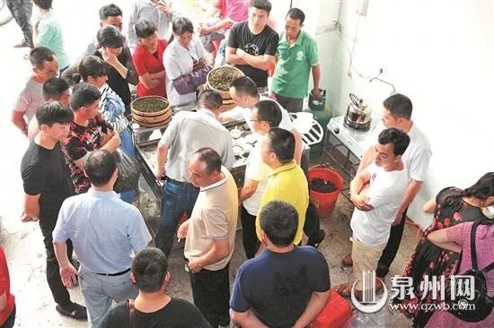 这边合作社刚刚从茶农手中收购茶叶,早已在一旁等候的客商马上加10%的价格买走。“身上背着一个包的人都是各地茶商。”詹国珍说。当天在场的茶商就有20多人,他们来自泉州市区、南安,以及省内的福州、厦门等地,有的甚至从山东等地远道而来。前些天,每天都有很多茶商一早来到天香魂茶叶专业合作社,等候新鲜上市的秋茶。“我每天收购6000斤秋茶,全部都在当天卖光,完全是供不应求。”