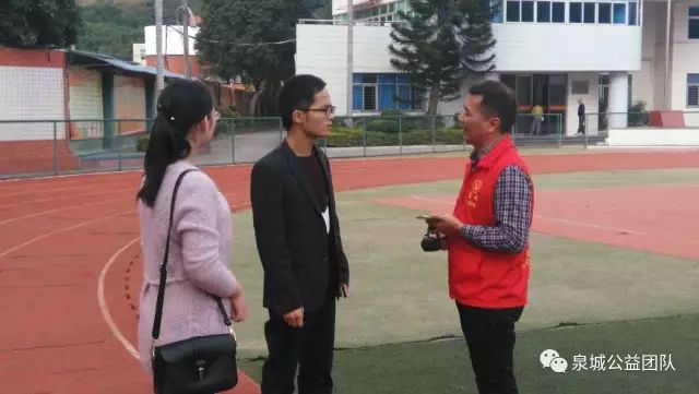 此次公益活动市委文明办祝文慧(左),东南网记者邓驯(中)也一同前行,向泉城公益团队发起人黄阿辉(右)了解详情!