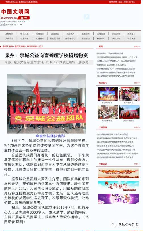 2016年12月8日,泉州市委文明办携手泉城公益团队前往盲聋学校慰问