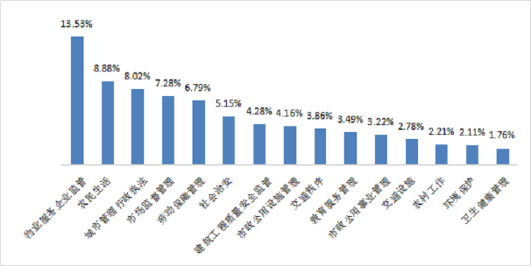 3.诉求热点。从全市受理情况分析,以下15类诉求热点占转办总量的77.53%,具体占比见下图: