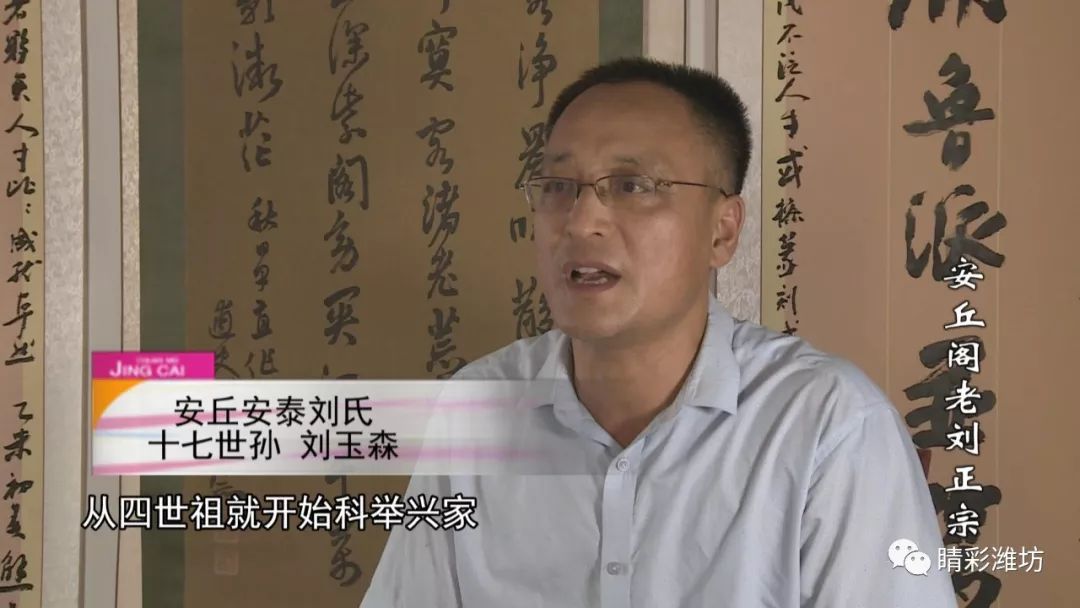 《安丘县志》记载:安丘安泰刘氏源于安丘东北乡安泰里,故又称安泰刘氏。《安丘刘氏族谱》记载,安泰刘氏源于栖霞万马村。因安泰刘氏中出现了一位明清时期安丘籍担任官职最高的文华殿大学士刘正宗,故安泰刘又被当地老百姓称作“相府刘”。