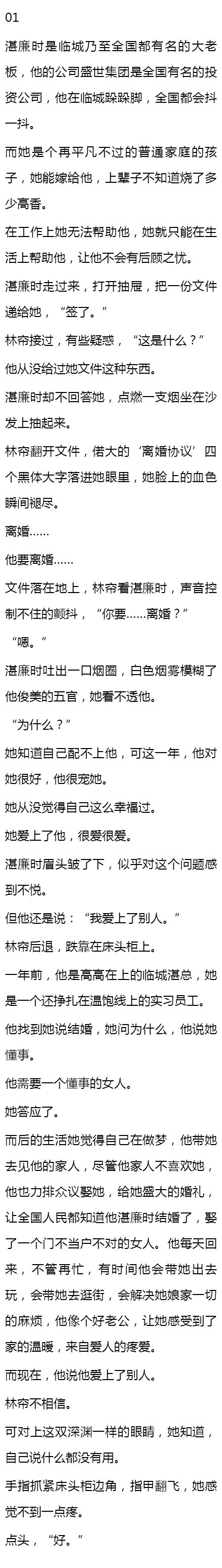 林帘要离婚的第二天,某总裁抱住她:“还离吗?”她团成一团:“再也不敢了!”