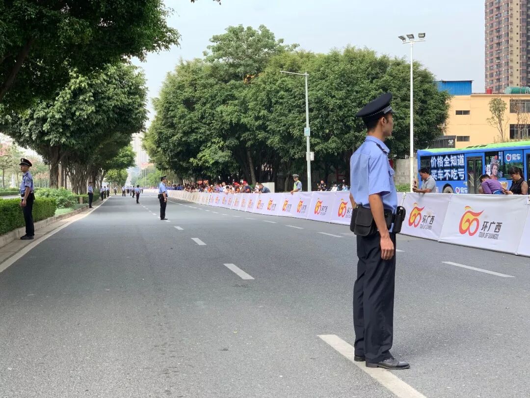 10月19、20日,2019环广西公路自行车世界巡回赛在南宁开赛。兴宁警方执勤警力严格落实既定安保工作方案,坚守岗位,全力维护现场安全秩序,保障参赛选手、群众的安全,确保了安保赛段安全、有序。