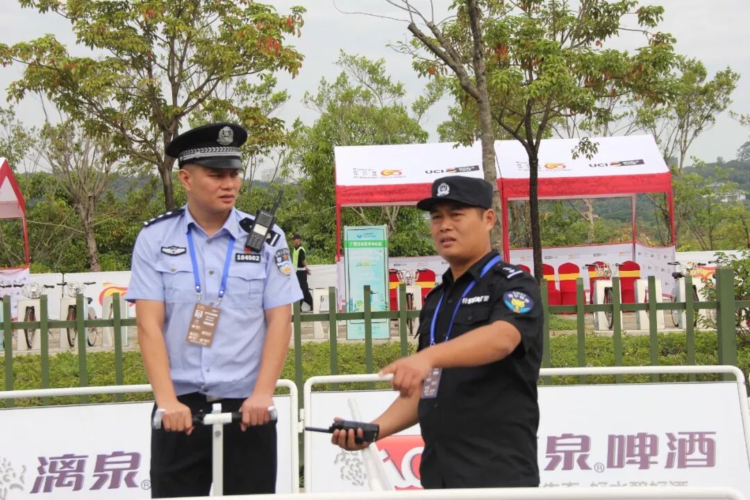 比赛期间,执勤民警提前4个小时到达比赛起、终点现场,检查隔离设施的搭建工作,不放过任何一个风险隐患,牢牢守住安全底线确保各项安保措施落实到位,全保障赛事的安全顺利进行。制定和发布2019环广西公路自行车世界巡回赛(南宁站)期间“低慢小”航空器管理工作的通告,对重要区域开展低空安全防控和无人机反制工作,确保核心区域空载的绝对安全。