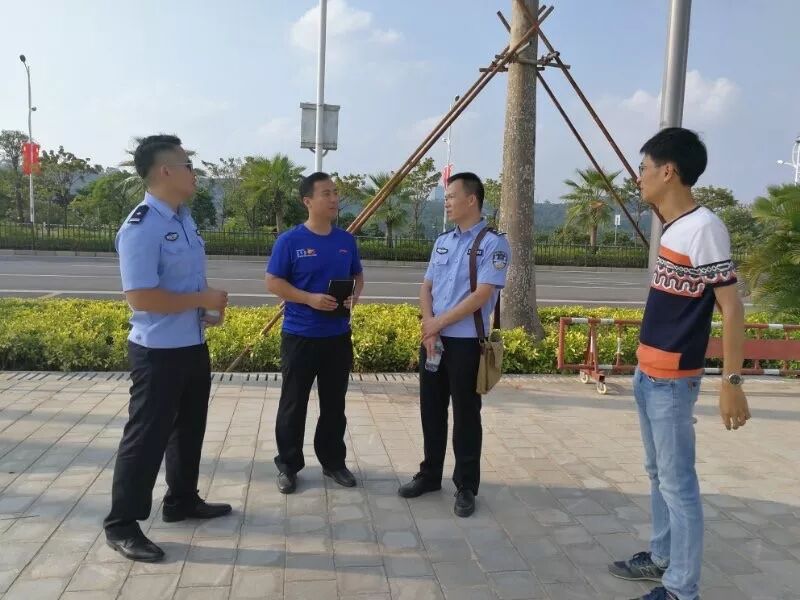 ▲市公安局林松副局长、治安支队李志明政委检查指导安保工作的组织情况