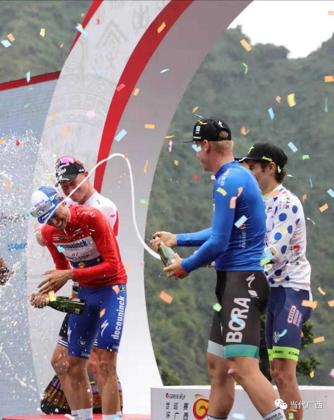 2019环广西公路自行车世界巡回赛今天下午在马山弄拉风景区结束了本届第四赛段,也是被称为“皇后赛段”的激烈角逐。来自比利时德科尼克-快步车队西班牙车手恩内克·马斯最后关头击败对手,登顶南宁—弄拉赛段冠军之位!