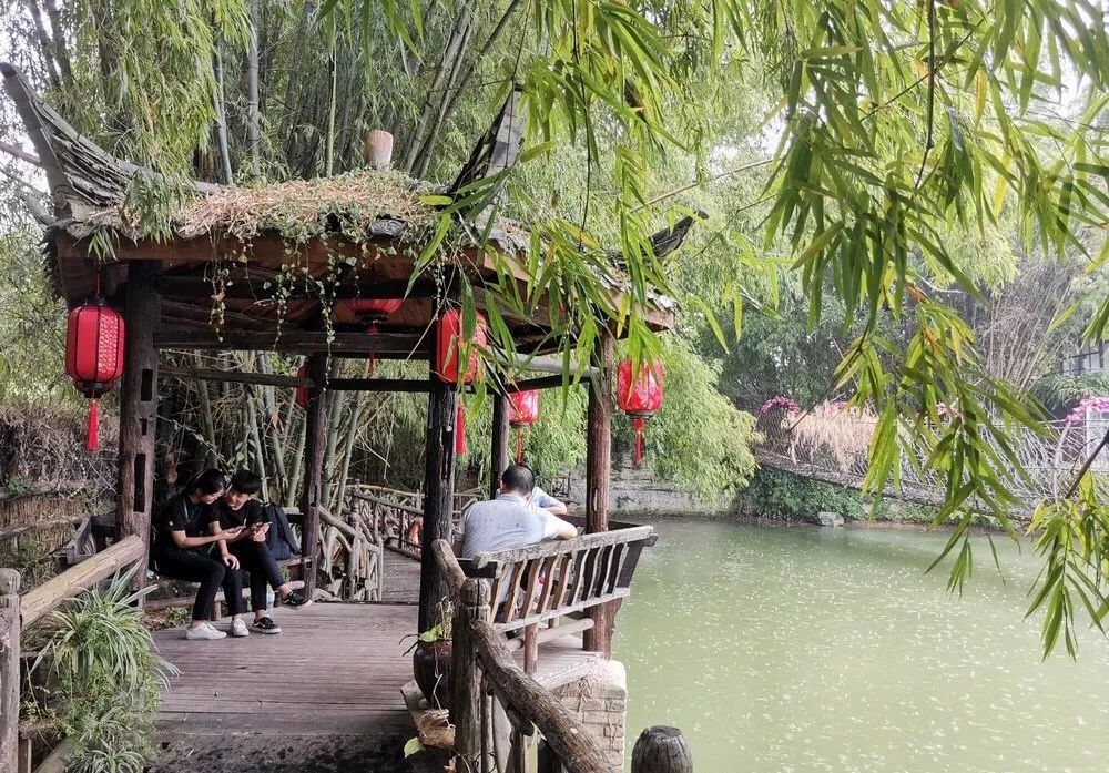 小桥流水人家的景象,在这里可以给你大饱眼福。倚靠在凉亭旁看吊桥上的人来人往,说不出有多文艺。