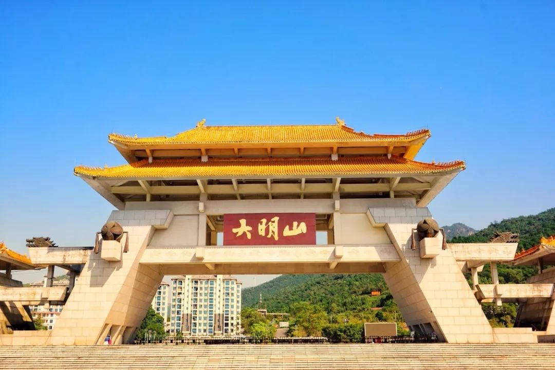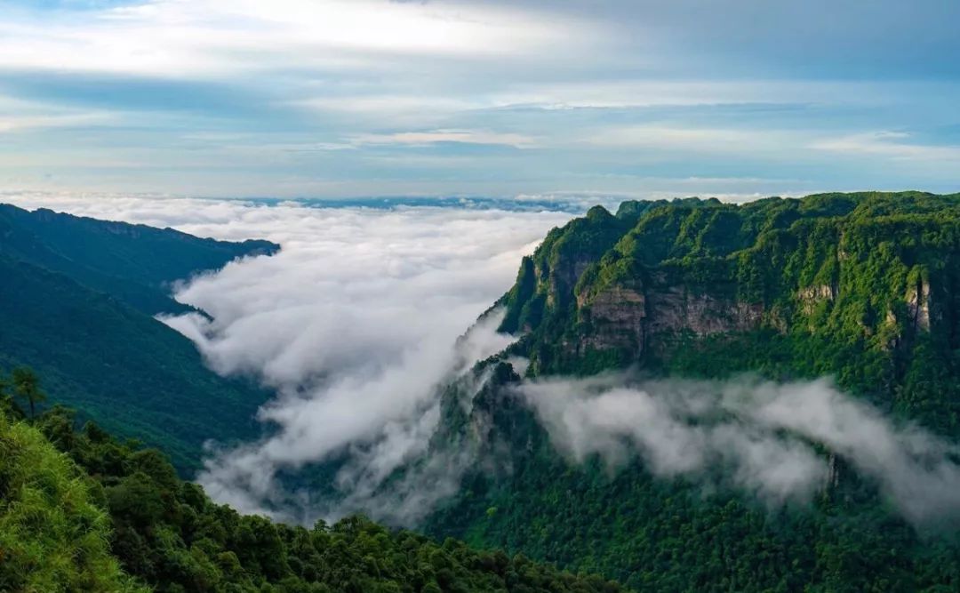 大明山平均海拔高达1200米,云层缠绕着半山腰,山峦重迭,连绵不绝,被誉为“北回归线上的绿色明珠”。