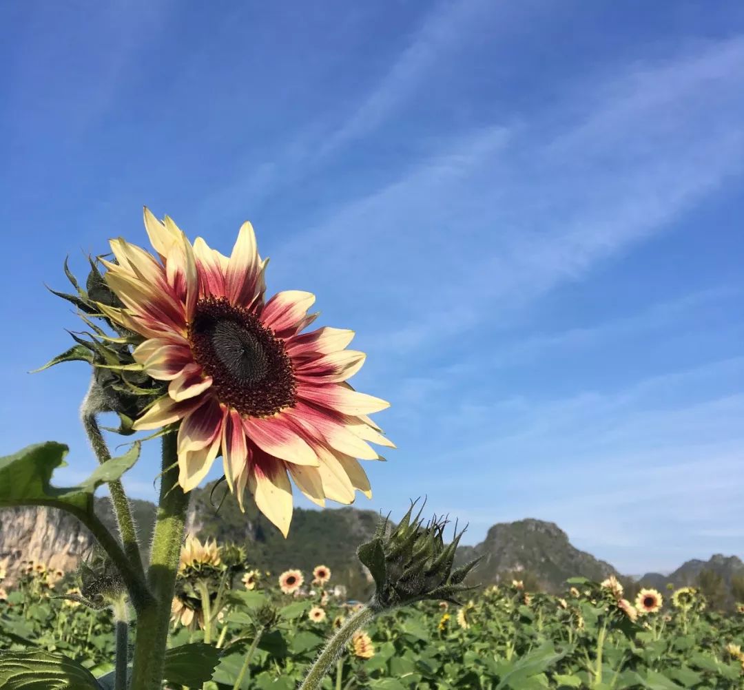 这里种植了500多亩的向日葵,四面八方前来的游客结伴在花海中徜徉,向日葵的朝气,能一下子唤起人们对梦想和生活炽热的爱。