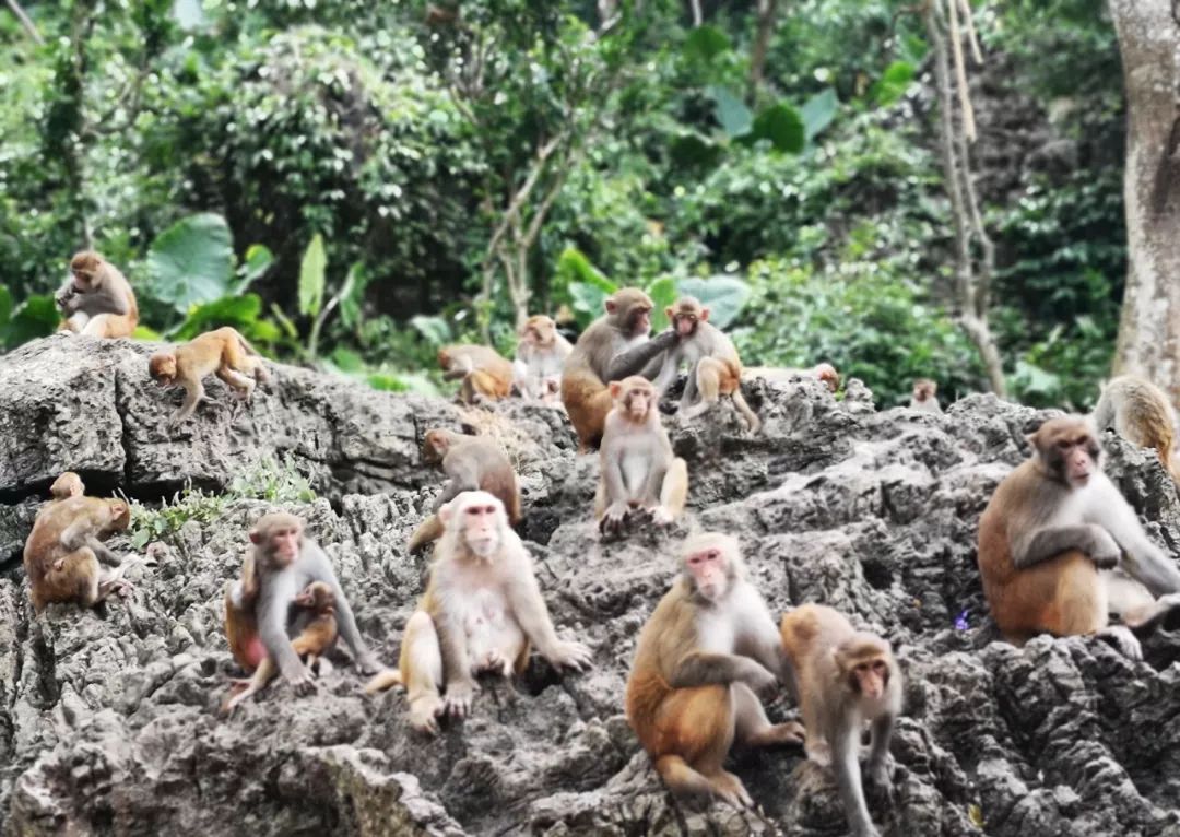 龙虎山一大景点是观猴,现有饲养的猕猴2500多只,集散在路边、桥头、沿江迎接宾客,活泼可爱,能与游客嬉戏玩耍,合影留念,野趣无穷。