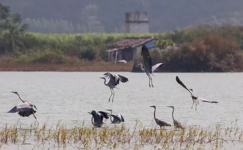 冬天南飞的候鸟喜欢在这里栖息,在天蒙蒙亮的时候,远远的就会发现一只只白色精灵,在宽阔的水域翩跹起舞。