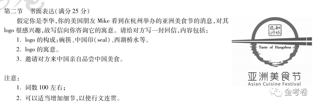 (2)中国传统文化潜入高考命题。《领航卷》英语作文就巧妙融入中国文化元素,图文结合,考查“读、看、写”能力。