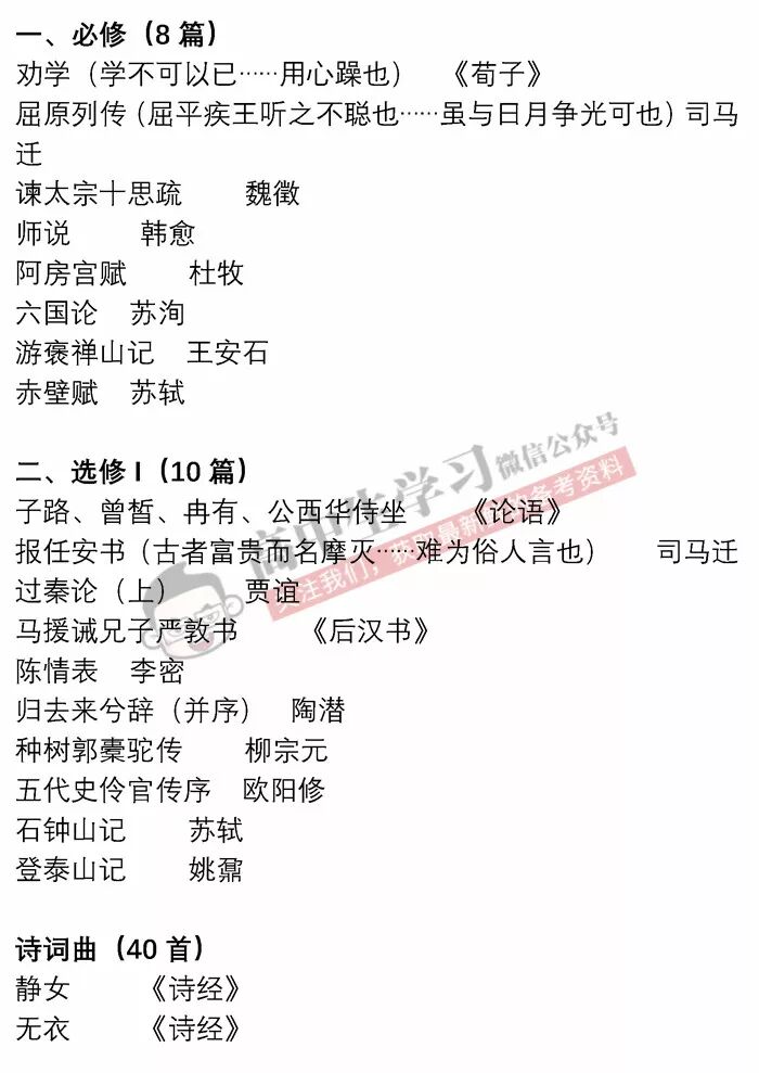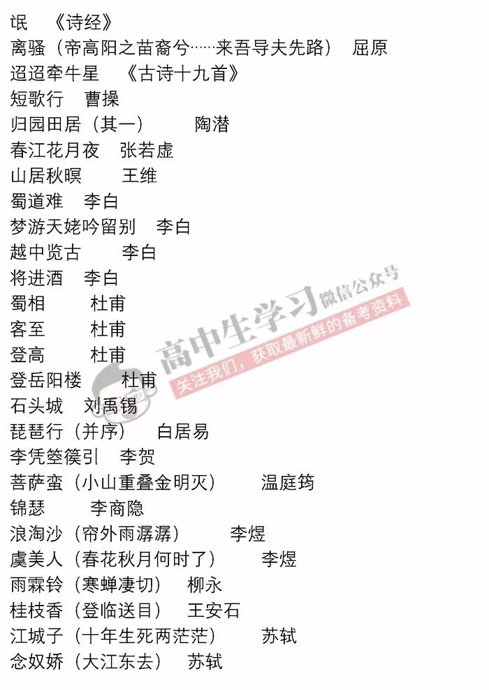 新课标要求增加的这些篇目,虽然不在大多数省份必考范围内,但也非常值得考生关注,因为很有可能出现在古诗文阅读题中!