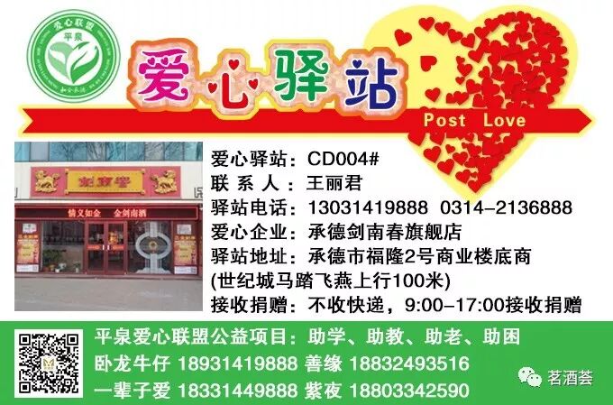 如果您身边的朋友想参与“日行一善”或想关注平泉爱心联盟公益活动,请加卧龙牛仔18931419888微信为好友,有爱就有希望,让我们一起释放爱的力量!