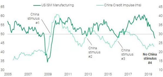 再来看下中国的信贷脉冲,可以看到中国经济其实已经是领先全球了。