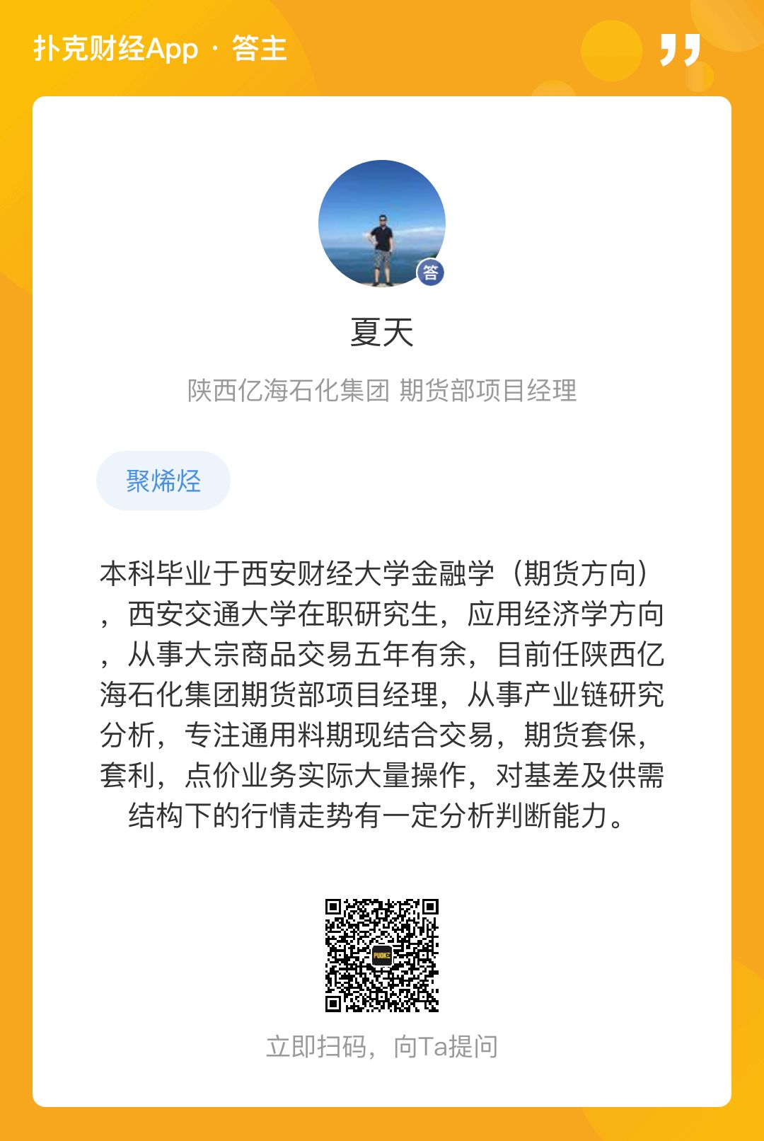 回答者:夏天 | 陕西亿海石化集团 期货部项目经理回答时间:2019-10-17 17:32:31