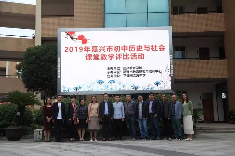 2019年10月16至17日,2019年嘉兴市初中历史与社会课堂教学评比活动在平湖市文涛中学隆重举行。嘉兴市各县区8位老师参与角逐,平湖稚川实验中学的徐燕老师代表平湖市参赛。