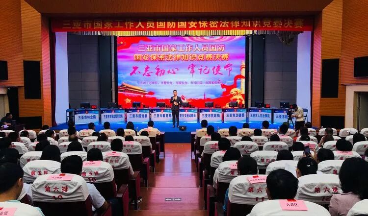 ▲▲▲10月18日,三亚市普治办、市司法局、市国家保密局在市图书馆联合举办三亚市国家机关工作人员国防国安保密法律知识竞赛决赛。市政府副秘书长李云凯、市司法局局长季端荣、副局长高文军、市国家保密局局长张曾福、市委政法委调研员李习华等领导出席活动,全市30多个相关单位党员干部、三亚学院党员学生400多人观看比赛。9支队伍经过两个小时的激烈角逐,最终市市场监督管理局摘得了本次比赛的桂冠。
