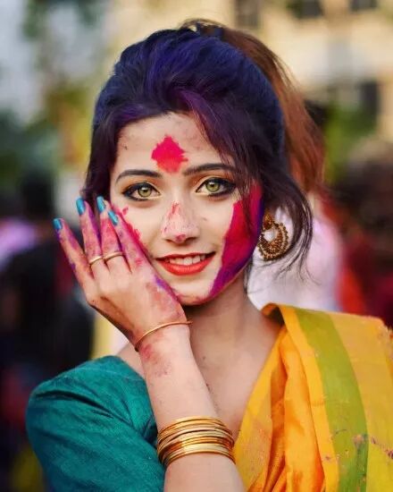 当时乔伊-塔桑尼尔在印度洒红节上身着盛装和大家互动玩耍,被摄影师捕捉下,就有了这一组经典照片。
