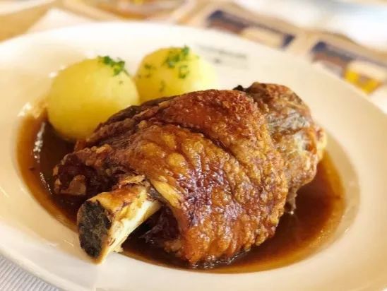 作为一个吃货,绝对不能错过的是Haxnbauer的烤肘子!猪肘外皮金黄焦脆,带着胶质的口感,里面肉烤得软,味道超级赞!但是两个人半只刚好,多了就腻了~