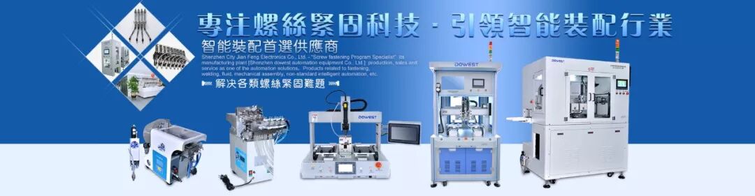 【DOWEST】专注全自动螺丝紧固,产品:桌面型自动锁螺丝机,机器人全锁螺丝机,智能电批自动锁螺丝机,CCD在线式自动锁螺丝机,吹吸结合全自动锁螺丝机,螺母全自动供料锁付,机米螺丝全自动供料锁付,多轴吹送自动锁螺丝机,全自动无人生产线的研发与制造。