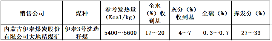 2019年10月内蒙古伊泰煤炭股份有限公司大地精煤矿销售合同执行期: