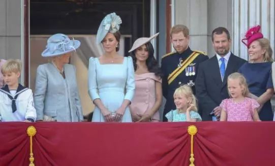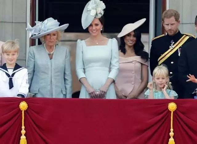 凯特王妃在女王的阅兵仪式上也是站在C位,卡米拉和梅根王妃站在她一左一右。站在凯特王妃旁边的卡米拉脸上一点笑容也没有,似乎对这样的安排很不满意。