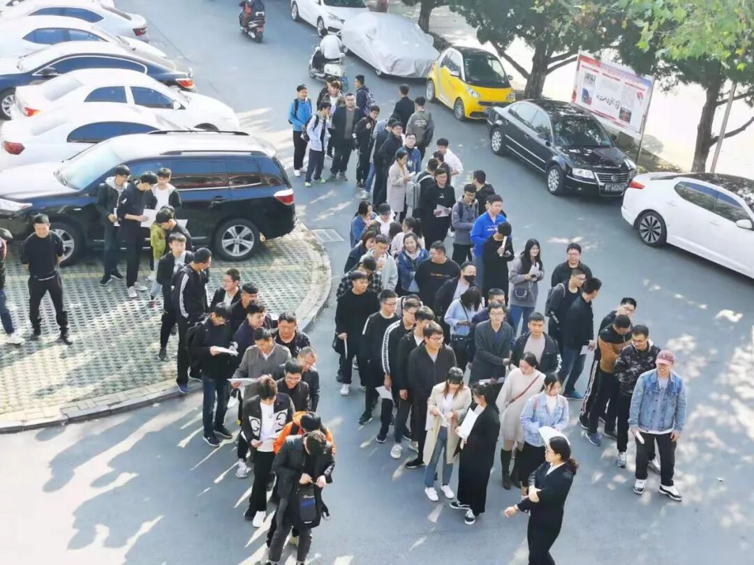?中博学子早早的来到会场外集合等待?