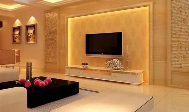 电视背景墙在设计的时候记得不宜过厚,会导致室内整体的空间显得非常的狭窄,一般看电视的尺寸是眼睛距离电视机的最佳位置是电视机尺寸的3.5倍,如果电视墙做的太厚的话,会缩短电视机与人的距离。