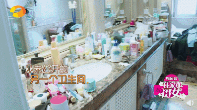 在袁姗姗家里,用不完的化妆品堆了满满一个梳妆台,穿完的衣服直接堆在浴缸边,卷发棒旁边还放着一只袜子。