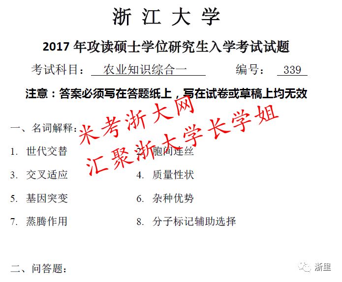 20浙江大学作物学339农业知识综合一考研真题答案874农业专业知识