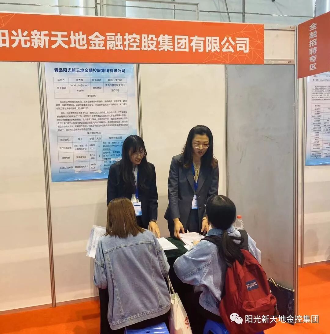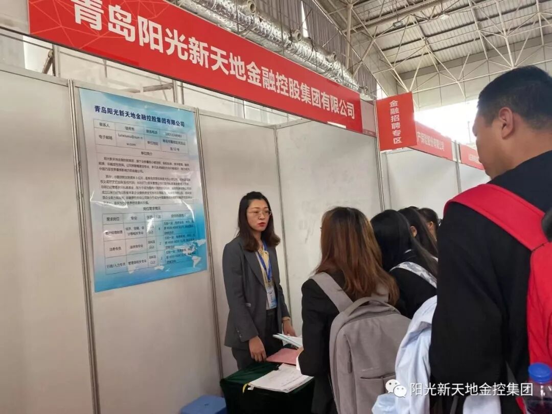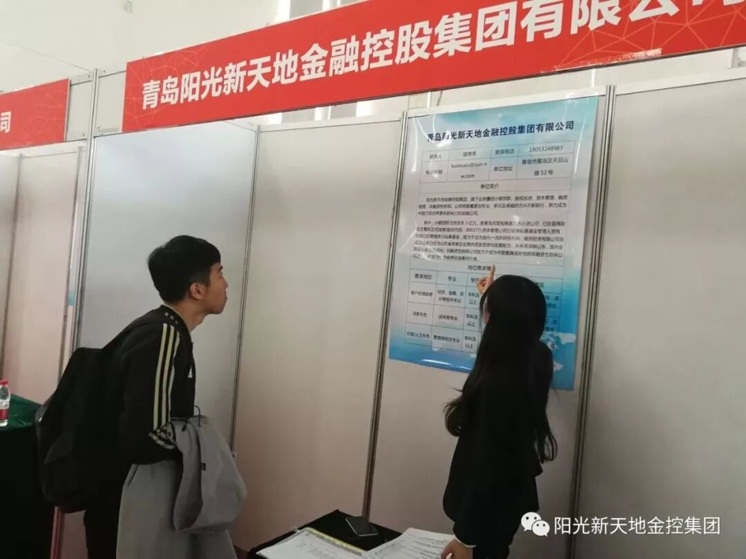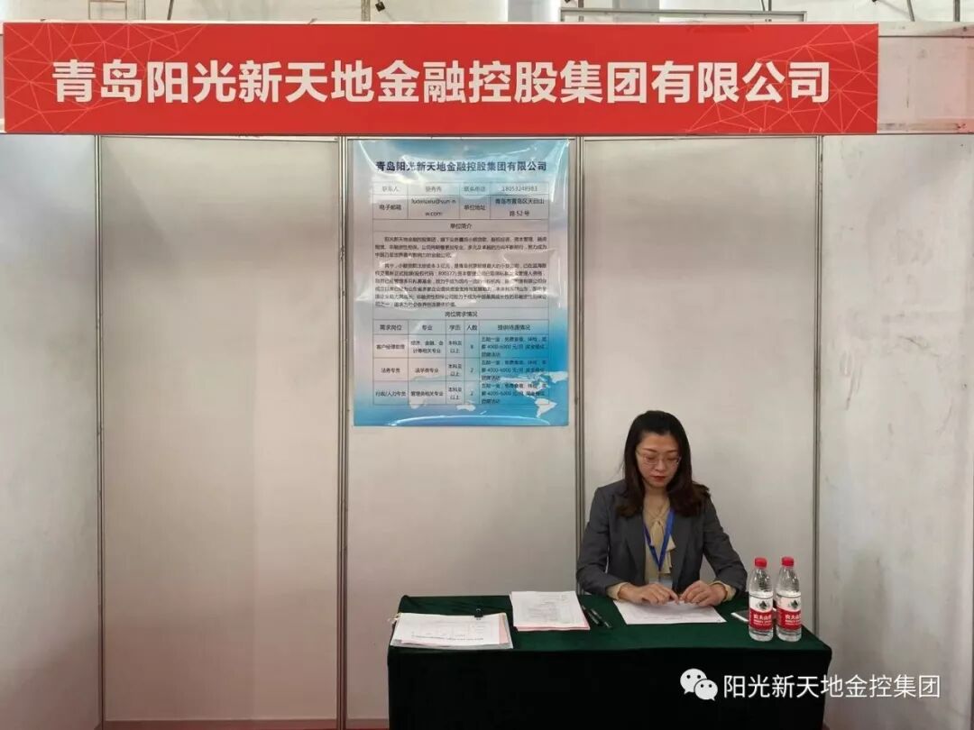 招聘会场气氛热烈,井然有序,阳光新天地金控集团展位前,应聘者络绎不绝。我们依次向前来投递简历的同学们介绍了公司的发展历程和未来前景、旗下小额贷款、资本管理、融资租赁和非融资性担保四个板块的主营业务和发展方向以及需求岗位的主要职责及薪资情况。