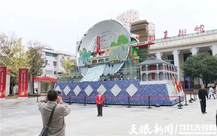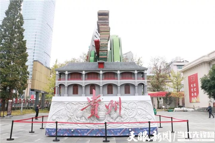 在10月1日隆重举行的庆祝中华人民共和国成立70周年大会上,盛装亮相的“多彩贵州”彩车缓缓驶过天安门广场,吸引了全世界的目光。10月20日,贵州美术馆门前,“多彩贵州”彩车经过近10天的安装,已即将安装完毕,吸引了众多市民前来拍照留念。