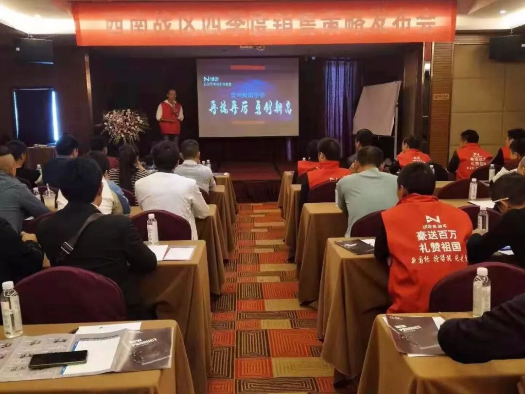 同日的江苏宿迁沭阳和安徽宿州也在上演一场年终决战的战役,两场的参会人数与此前相比均呈现翻倍增长,收到的订单也有很大的增长。电动车行业零售成交专家、绿能商学院高级教授周海滨周老师、中国超级成交智慧创始人、终端促销专家金钱勇金老师也助阵会议现场,为在场经销商朋友们带去了宝贵的经验分享和拓客技巧。据悉,沭阳现场签单1700+辆,宿州现场收订金58000元,订单1300+辆。