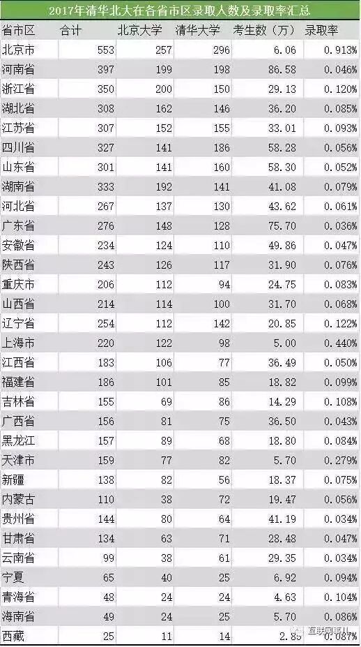看完大家发现没有,大部分省市(自治区),清北录取人数还不到100人!