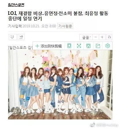 相关人士表示:“组合推迟了10月的回归日程后,并没有确定之后的日程,虽然有传闻说12月回归,但并没有正式公开表示12月回归。是年内回归还是以明年回归为目标做准备,内部正在讨论中”。