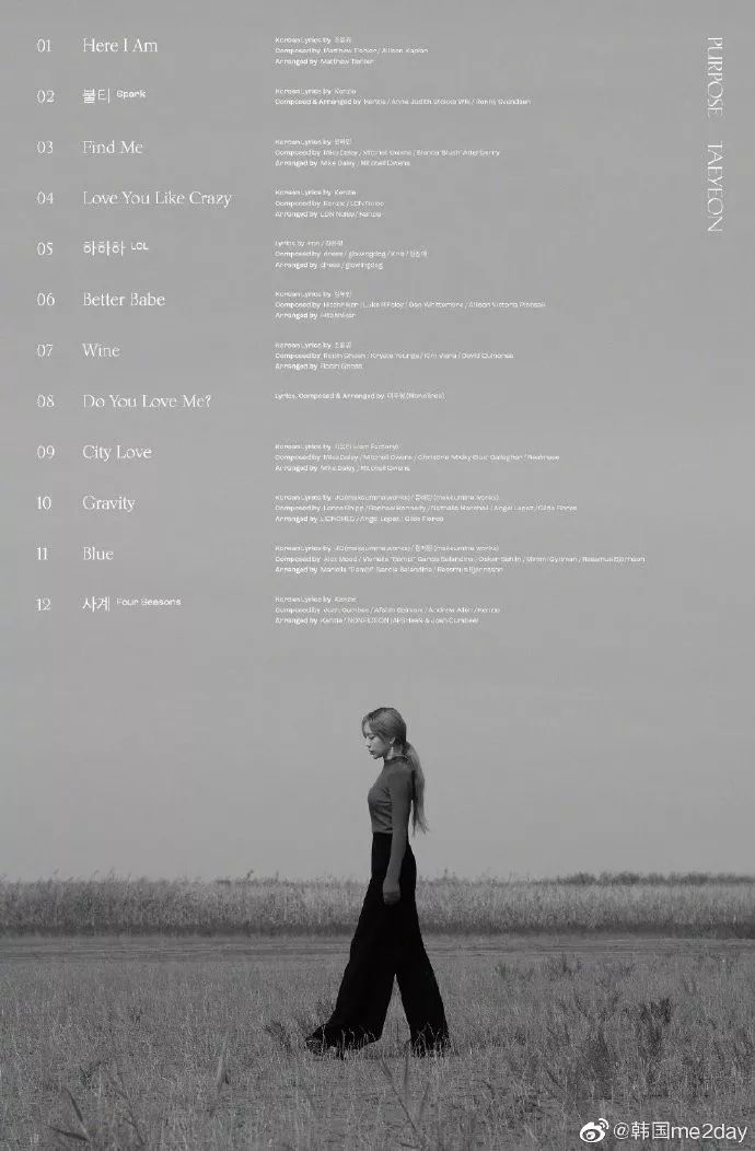 泰妍正规二辑《Purpose》最新的预告照、歌单及日程表公开
